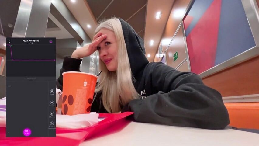 Скромная Stoned Bae кончает от вибратора в киске прямо в кафе